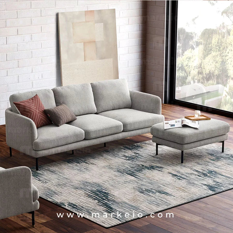 Arika gris clair - Canapé 3 places avec pouf