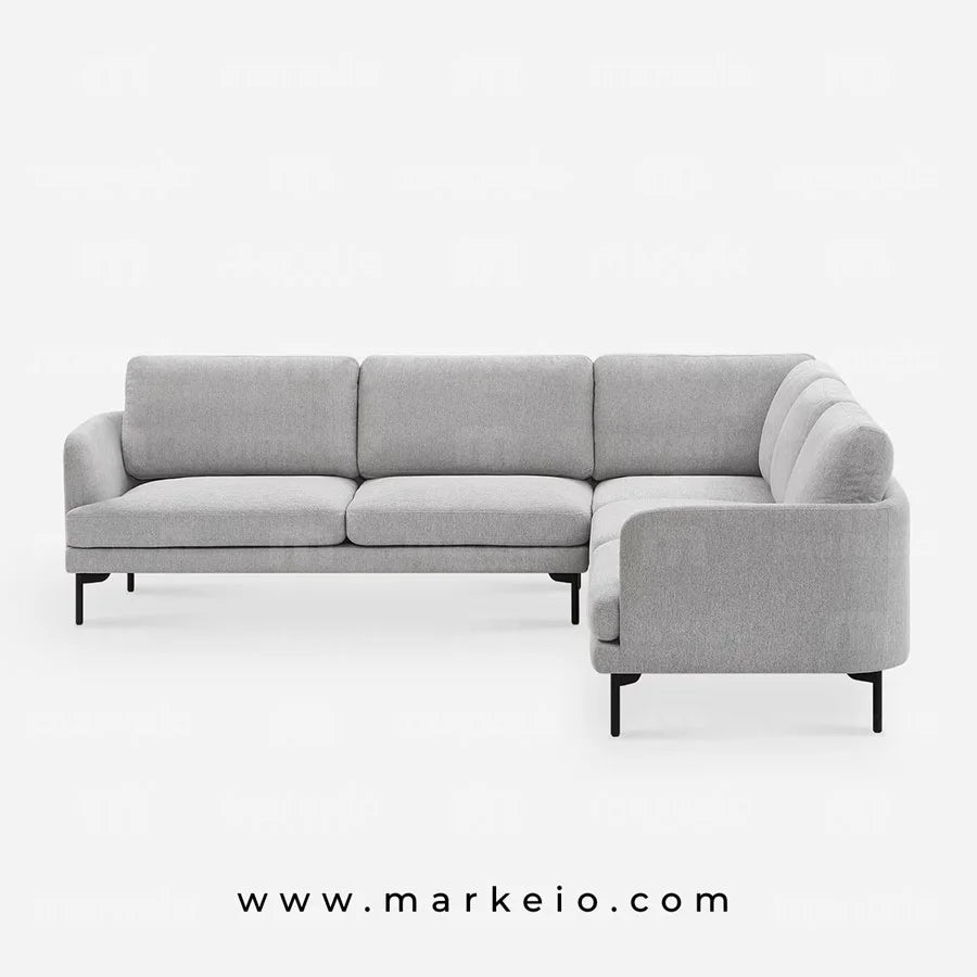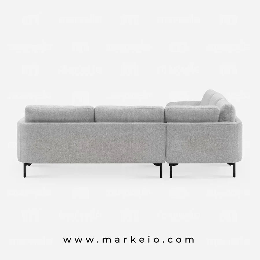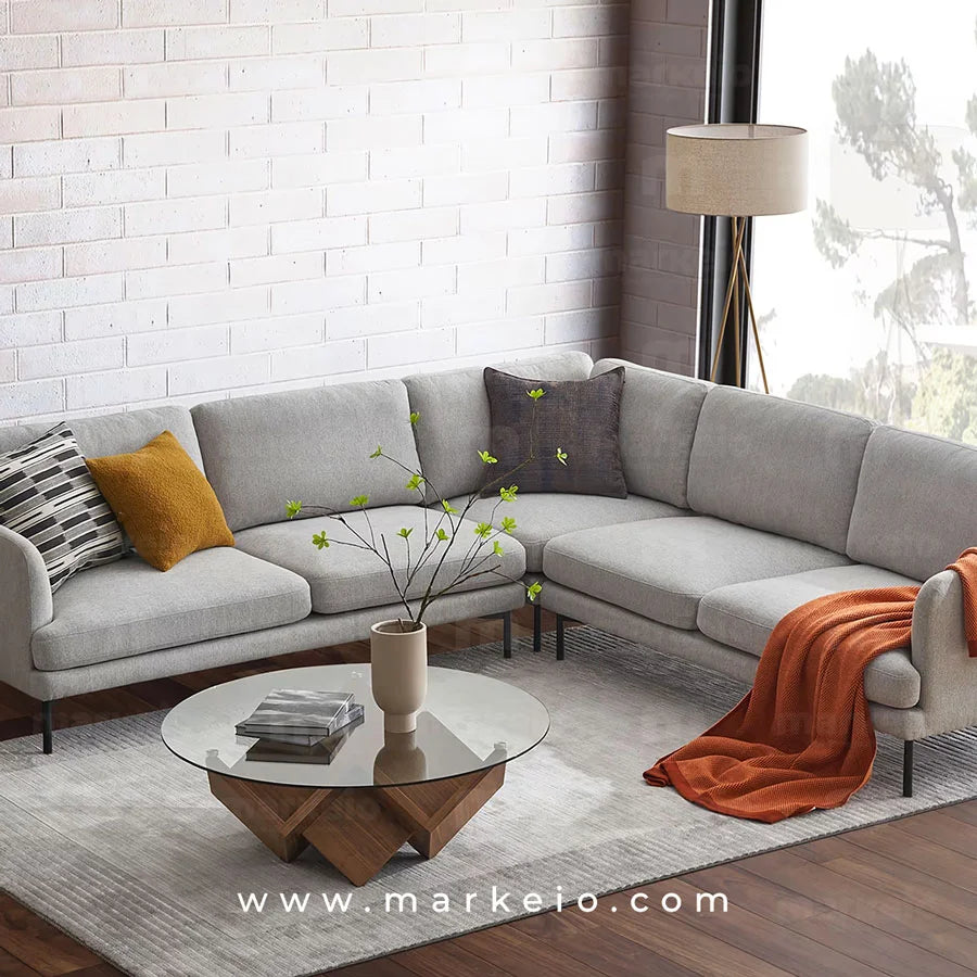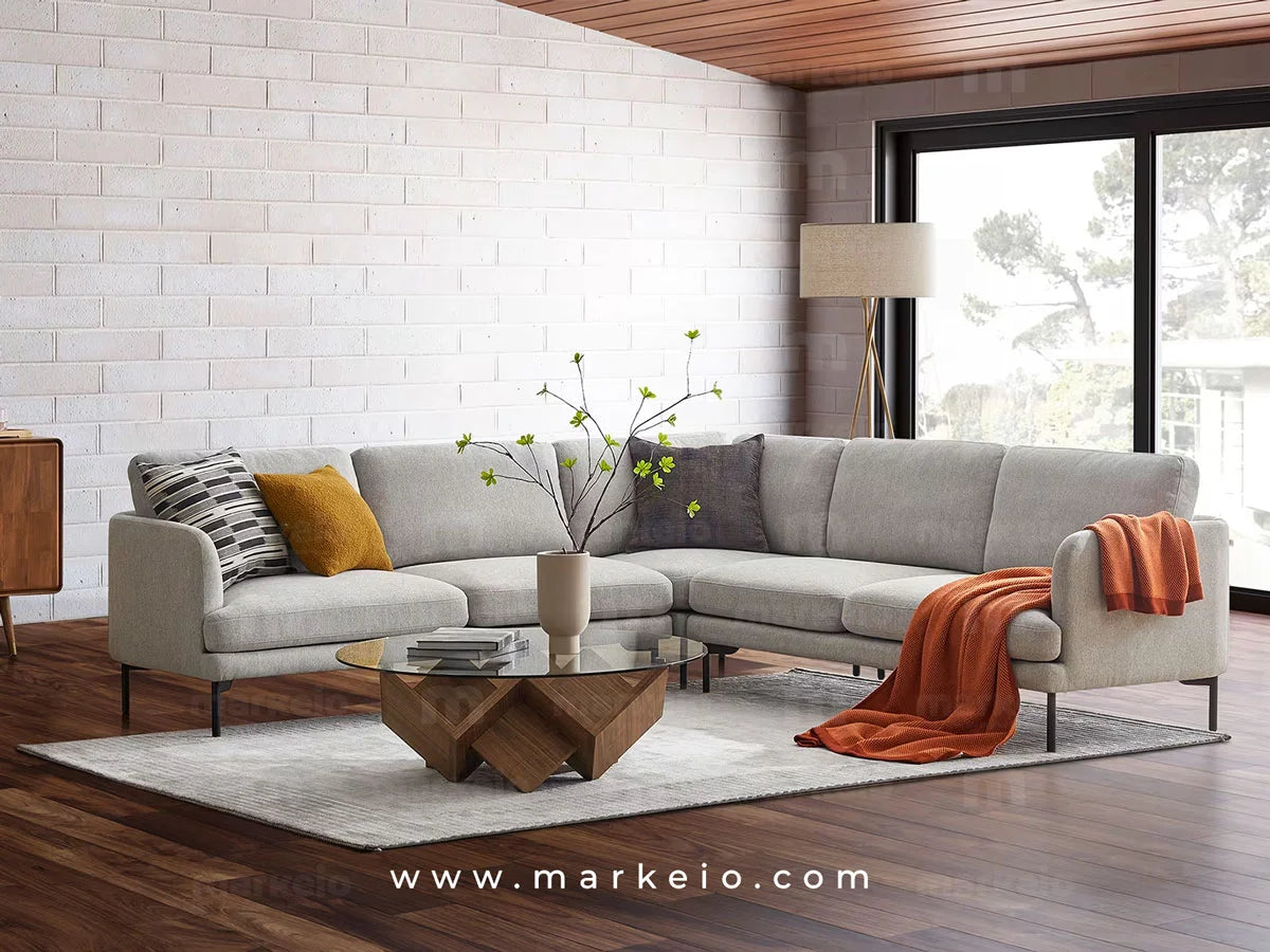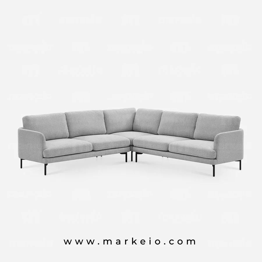 Cet élégant canapé d'angle Arika gris clair transforme votre espace de vie avec son architecture épurée et ses dimensions généreuses. Parfaitement adapté aux intérieurs marocains contemporains, il offre une flexibilité remarquable pour s'organiser autour d'un téléviseur, créer un coin lecture ou accueillir vos invités.