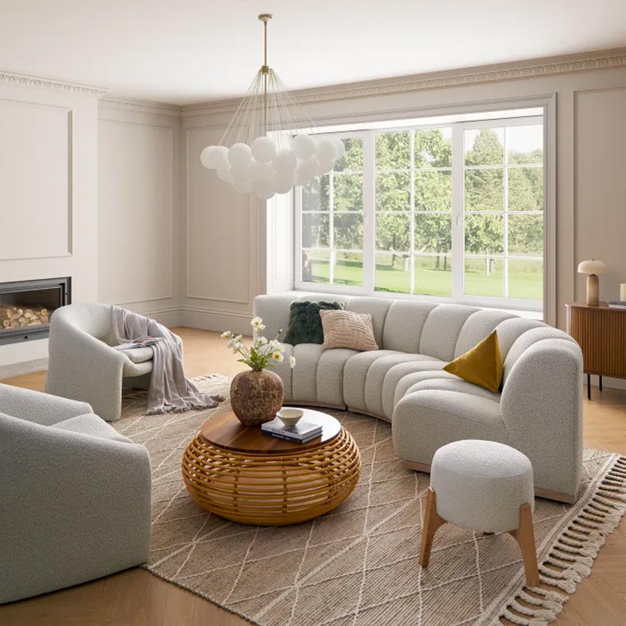 Idéal pour les petits et grandes espaces, la collection Arlo modulable respire une sophistication artistique avec sa silhouette incurvée. Son tissu bouclé résistant aux éclaboussures est un plaisir pour recevoir des invités