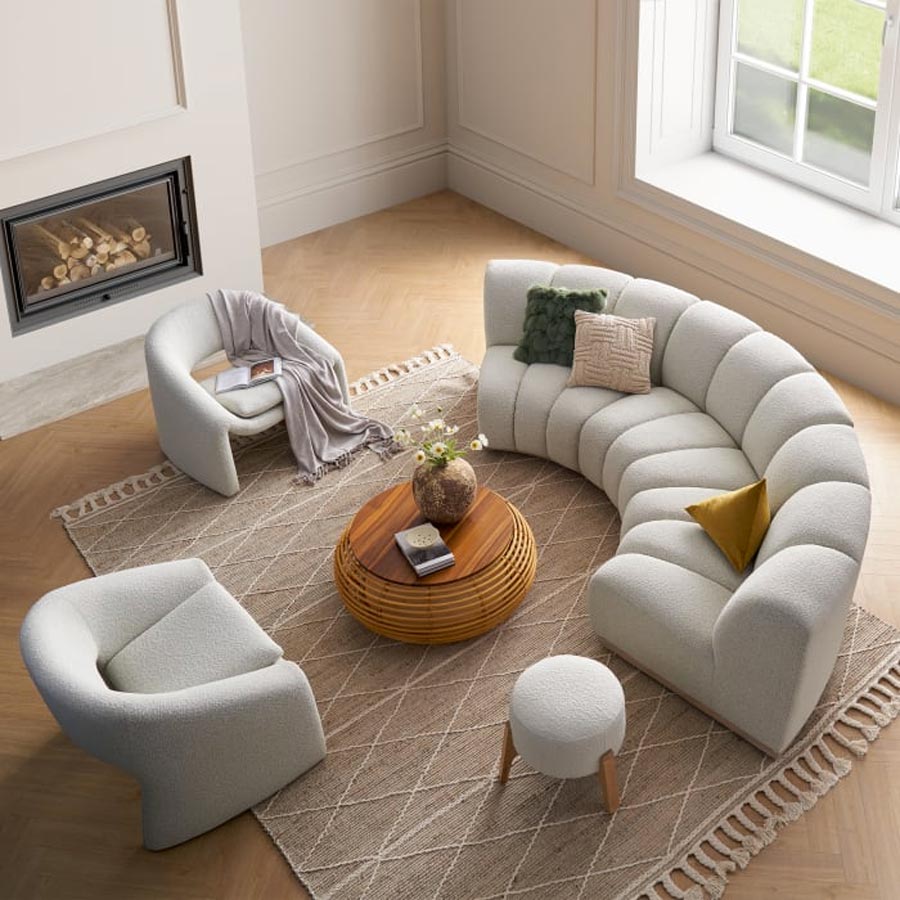 Idéal pour les petits et grandes espaces, Arlo corner respire une sophistication artistique avec sa silhouette incurvée. Son tissu bouclé résistant aux éclaboussures est un plaisir pour recevoir des invités